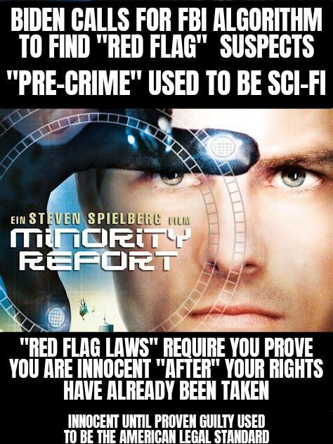 Red flag? Only Conservatives will get red flagged. Many will be guilty of nothing. Criminals and illegals will get blue flagged. For those who don’t know, blue flagged means you get a gift card, a free smart phone, a bus/plane ticket, a court date (which will be unenforceable since the police will be spending all their time monitoring the whereabouts of the Zuck=a=flagged.