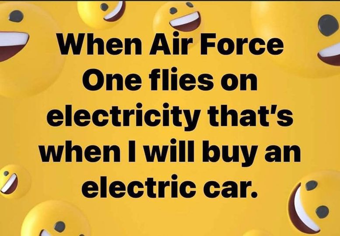 Oh I know but just tell when the H3LL they’d every fly Air Force One on just electricity or solar power.