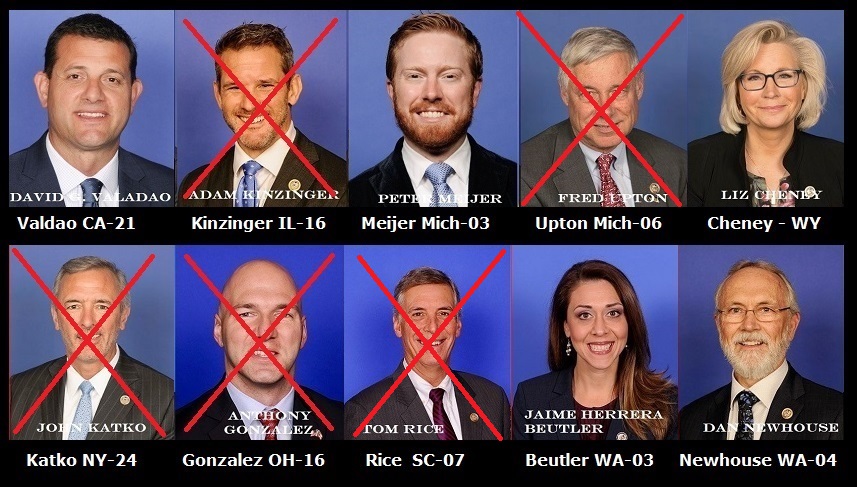 Knock out Impeachment Slime Jaime Herrera Beutler, Dan Newhouse, Peter Meijer, TODAY. The rest, including the now disgraced RINO, Liz Cheney, are either gone, or soon will be. Five are already quitters because they were so far behind. MAKE AMERICA GREAT AGAIN!