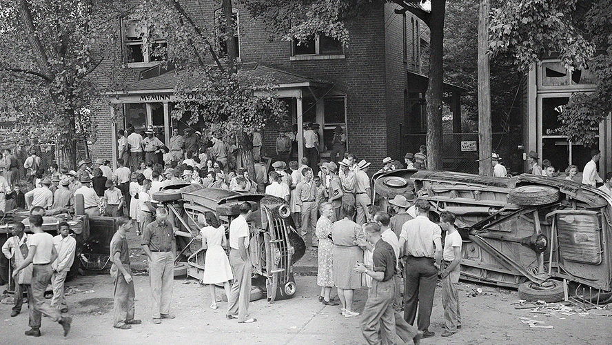 In the early evening White went to get the guns himself. He sent two GIs to get a truck and, with a few other veterans, perhaps a dozen, he headed for the National Guard armory. There, he said in a 1969 interview, he “broke down the armory doors and took all the rifles, two Thompson sub-machine guns, and all the ammunition we could carry, loaded it up in the two-ton truck and went back to GI headquarters and passed out seventy high-powered rifles and two bandoleers of ammunition with each one.”