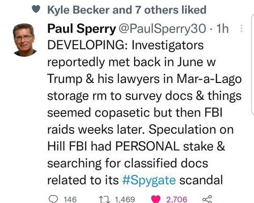 Investigative journalist Paul Sperry suspended from Twitter after posting details about Biden regime involvement in FBI raid.