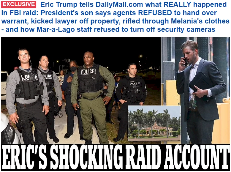 During the raid the FBI forced Trump attorneys to sit OUTSIDE in the heat while they rummaged through every room in President Trump’s historic home.