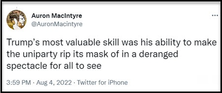 Also, if at least material “coversheets” and logs are not properly completed, there will be literally NO PROOF as to which materials were declassified by President Trump. The DoJ/FBI can spin a normally correctable error into a pattern of criminal behavior. THIS WILL BE the issue not the Presidential Records Act.