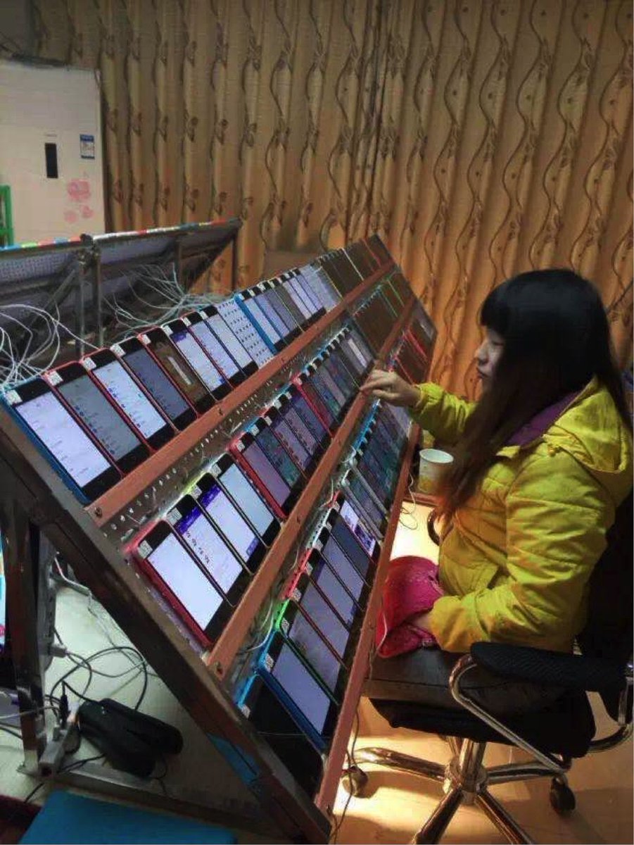 Must be freezing in there, jacket, warmer over her hand. So this is what a bot farm looks like!