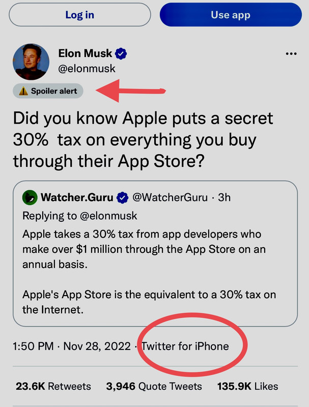 That said, some interesting developments recently as media rail against the platform and organized ultra-leftist groups demand advertising boycotts. Apparently, Apple and Android are threatening to remove the Twitter App and Mr. Musk is doubling down on exposing the matrix of how the U.S. government was working with Twitter toward controlling speech that was against their interests.