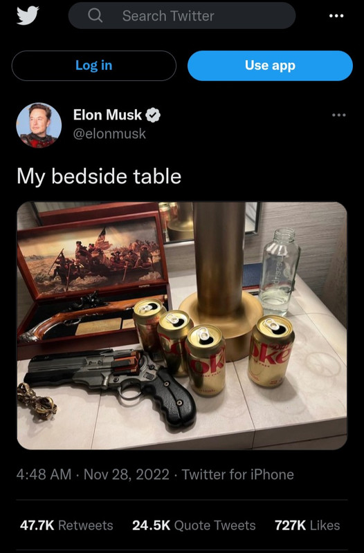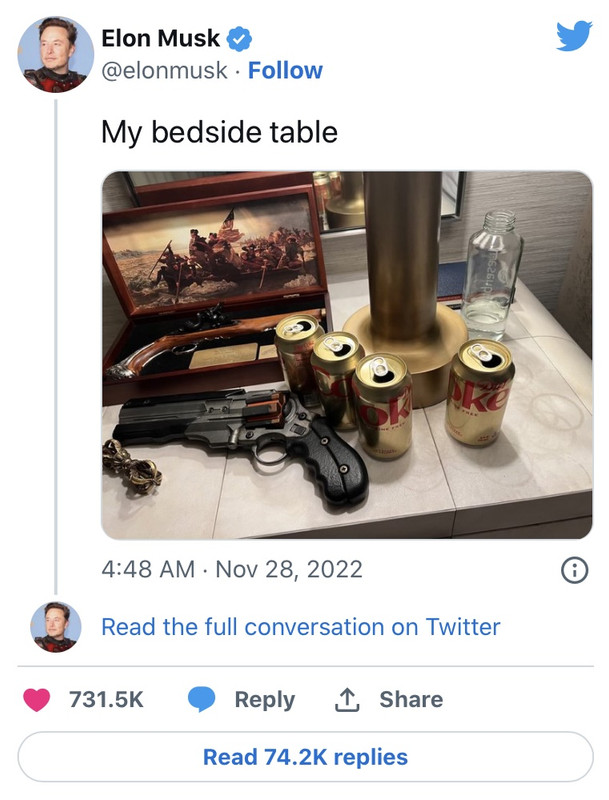 I’ve read pro & con opinions about Musk but trying to expose and fix the suppression of free speech on Twitter is definitely a step in the right direction no matter what you think of him. The looney left’s reaction to this confirms this and is entertaining too. I liken it to how President Trump caused the rats to expose themselves and their nefarious ways.