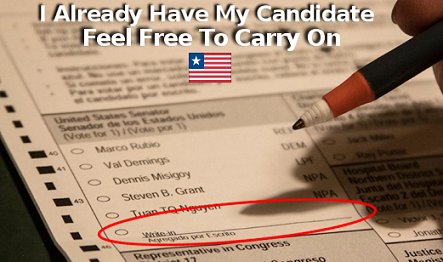 Yup, I could see myself writing in Donald J. Trump in that situation and walk away with a big smile.