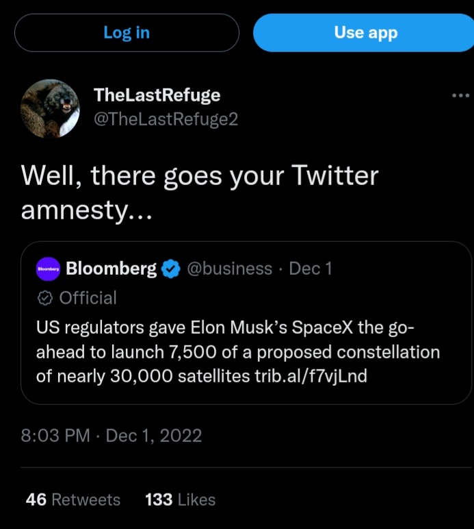 I also expect government retaliation on any business Musk has with the government.