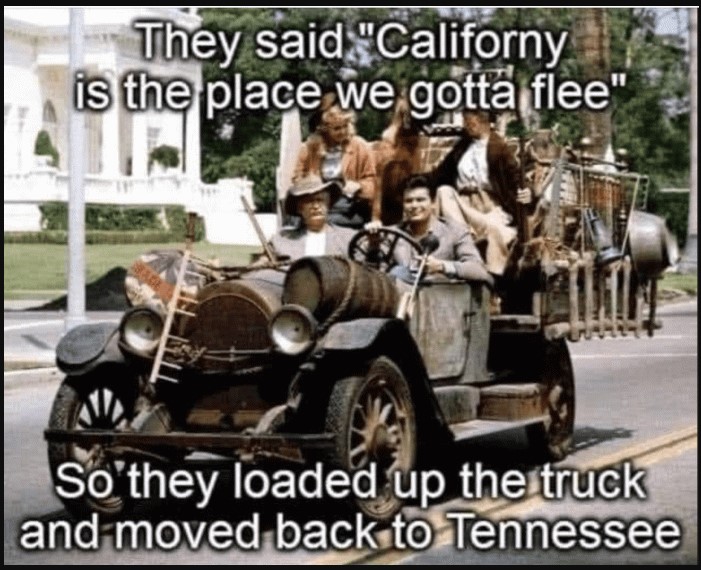 I laugh because I live here in the mountains of CA, and we’ve had family move to Tennessee. 🙂