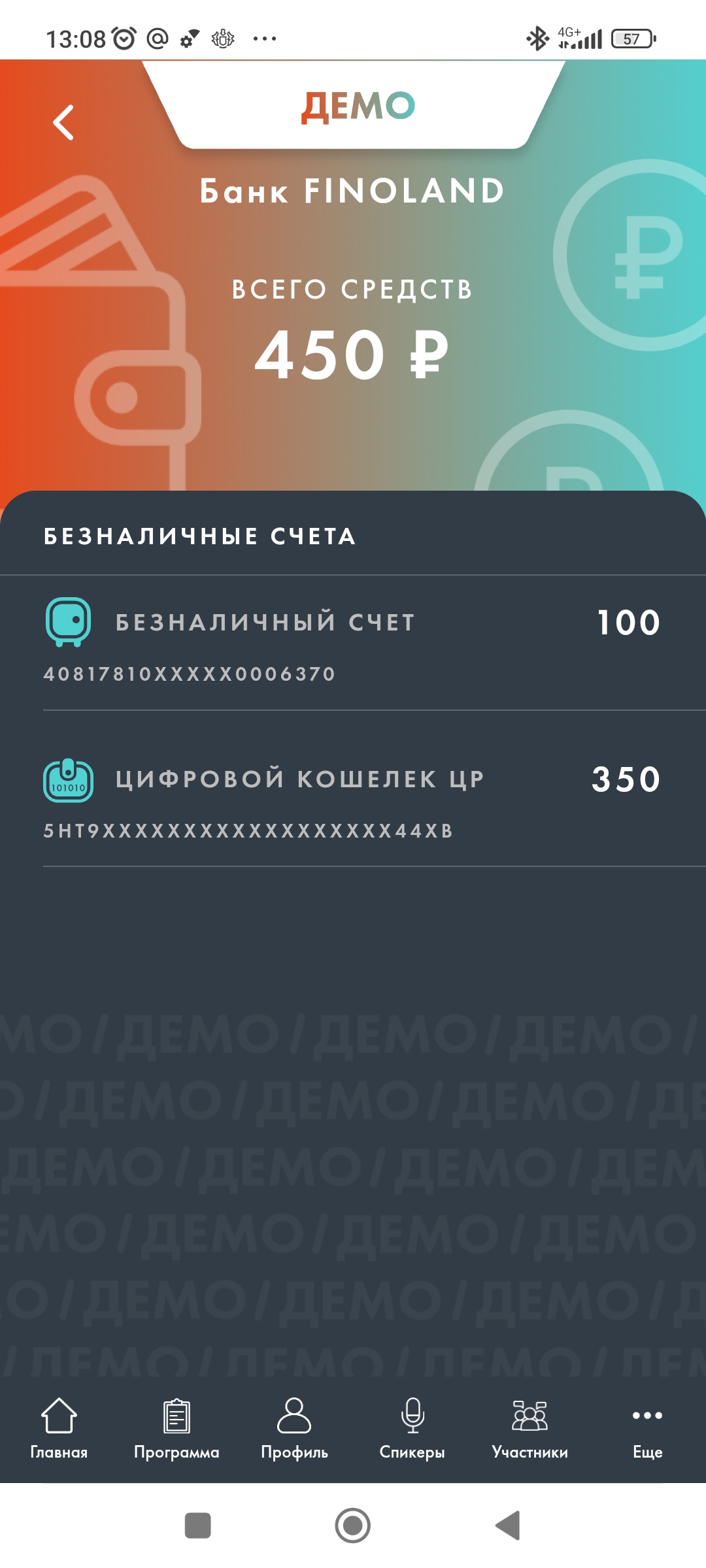 Forum visitors were the first to test the digital ruble in action. Everyone could open a digital demo wallet in the mobile application of the “almost real” Finoland Bank and carry out various operations: convert rubles from a non-cash account, transfer to other participants, replenish the wallet and, of course, pay for purchases.