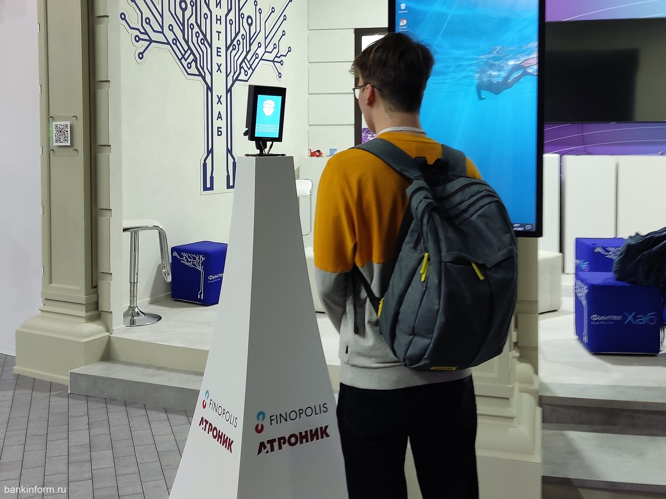 At the Atronic biometric terminal, having passed the Face Id, it was possible to “just like that” replenish the demo wallet for 100 digital rubles. Such terminals stood at each stand, so our hero’s wallet was constantly replenished.