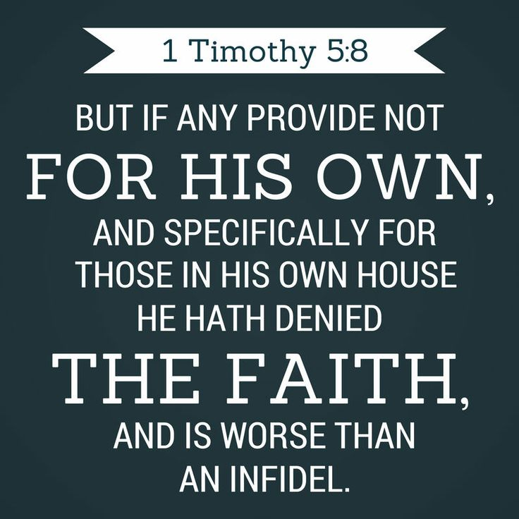 1 Timothy 5:8 (KJV) 8 But if any provide not for his own, and especially for those of his own house, he hath denied the faith, and is worse than an infidel.”