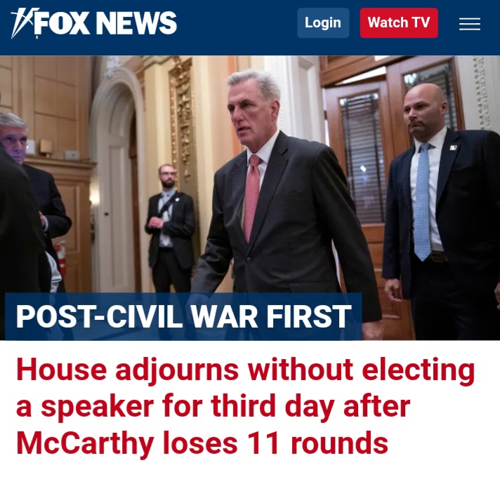 It’s been three straight days without a Speaker. It’s also been three straight days since a tax increase. And it’s been three long days since the last millions and billions and trillions in “aid” has been sent to the Kleptomaniacs of Kiev. I wonder if they’re beginning to have withdrawal symptoms………nah….don’t give a rip if they do.