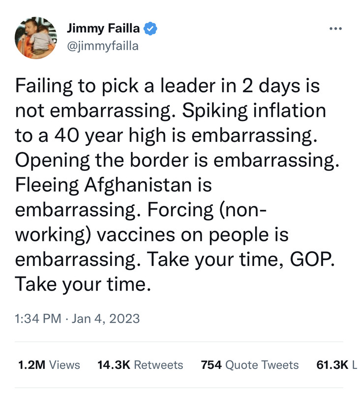 I’m embarrassed for the 200 republicans repeatedly voting for McCarthy that none of them has the self confidence either to tell McCarthy he failed or to step in and offer to do the job.