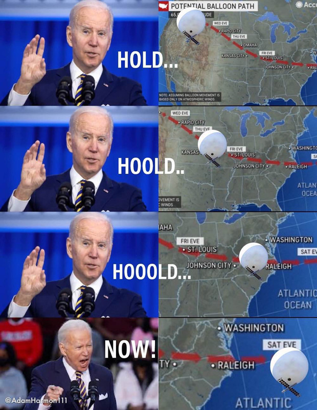So if I get this straight, this was a chynese spy balloon? This chynese spy balloon traveled across the United States over various military facilities? The junta occupying DC waited until it was “safe” to blow it out of the sky? It was not “safe” until it got to the Atlantic Ocean?
