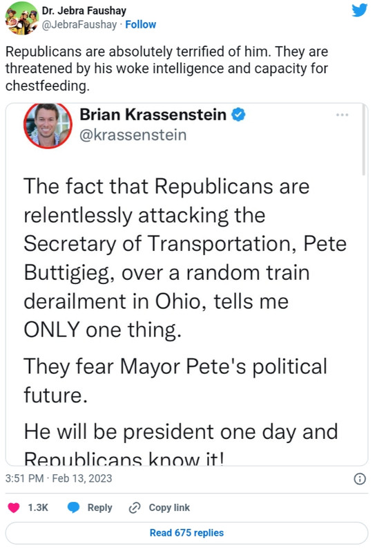 What we do have is the outrage…I did hear someone yesterday talk about all the train derailments and that most are due to broken rails. Lack of infrastructure upkeep.