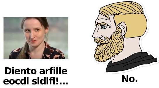 An airhead with an agenda, and a Canadian (?) (South African?) accent.