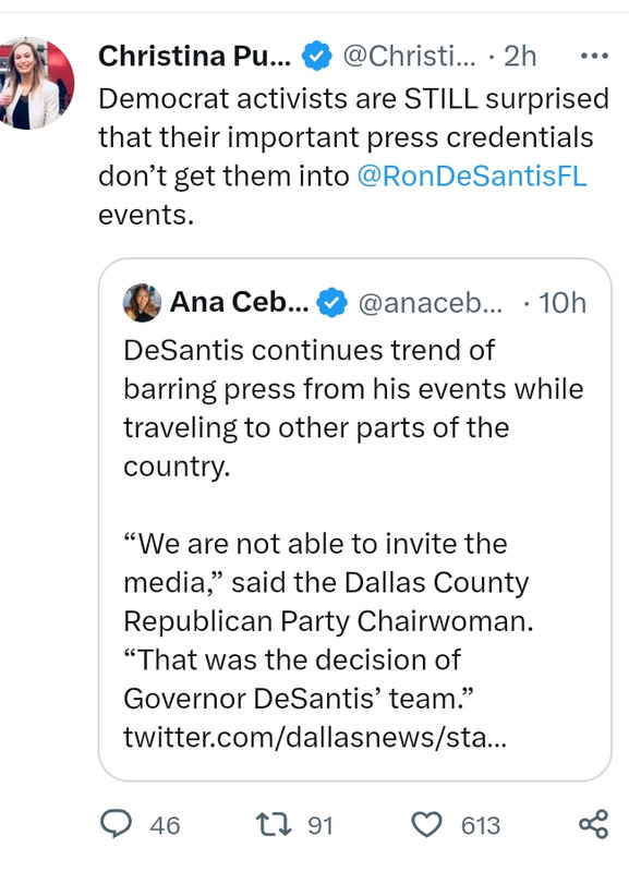 I’m glad to see the media coverage on this. I would not be concerned. IDK what they’ve done to DeSantis to get him to agree to such nonsense, but they’ve just pulled the rug out from under him with such action. I knew he was too wet behind the ears to be Prez at this time, but for him to fall for this? Any concerns I may have had that DeSantis might stand a chance have now vanished.