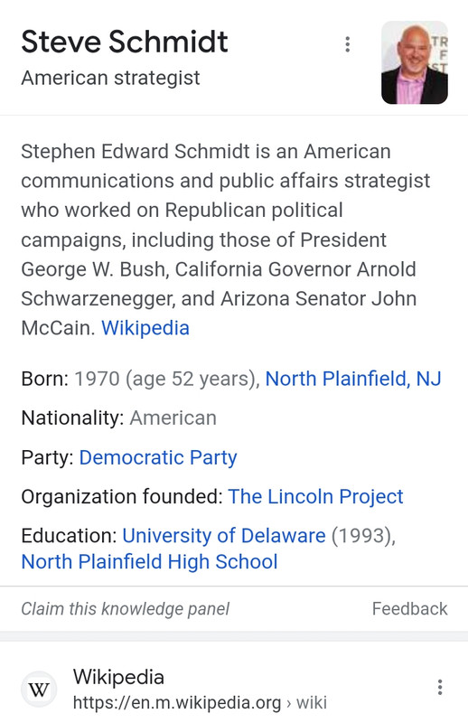 It’s Steve Schmidt famous for: 1) his coke addiction; and 2) as a founding partner of Lincoln Project. LMAO.