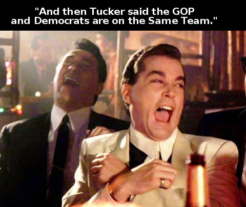 Tucker is ripping right back – Schumer, McConnell, et al- they are all on the same side.