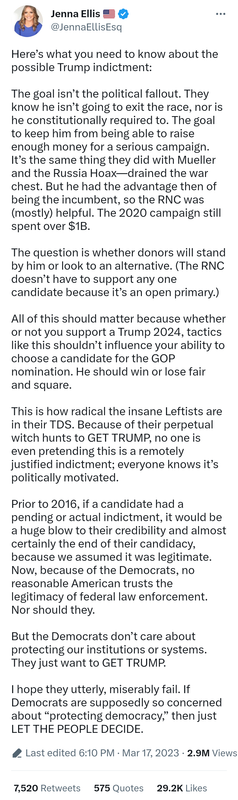 I’m seeing from a few legal sources, Jonathan Turley (no conservative he) being one, that this persecution and targeting of President Trump will fail.