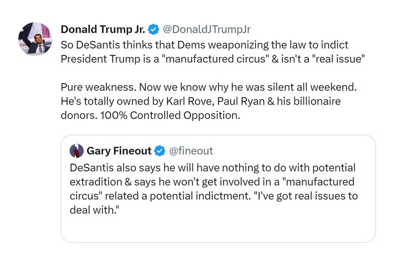 This was the dumb statement which ruined the rest. DeSantis also confirmed he will not be using his power as Governor to protest or contest the proceedings much as he sat by & did nothing after tipped off about Mar-a-Lago raid. Poorly played by his would-be Presidential campaign.