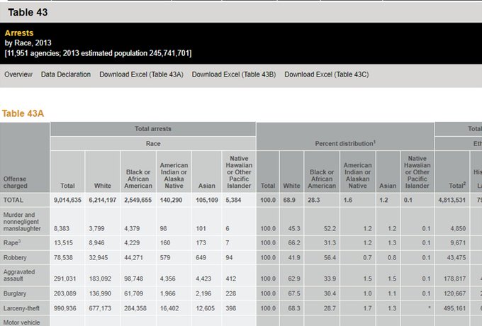 Found it strange, but if one looks at an FBI report that separates out crimes by race there is no category for Hispanics which is usually over 1/2 to 3/4s of the illegals in America. However there is a category for some other races that are a very small part of America.—Native Hawaiian or Other Pacific Islanders (0.1% of Population),, American Indian or Alaskan Native(1.6% of Poupulation), Asian (1.2% of the Pouplation)