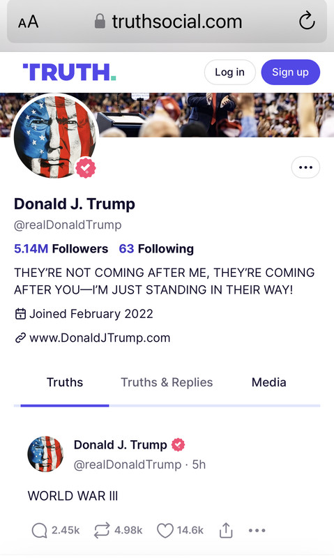 One of “The greatest challenge AMERICA faces is getting caught up in crisis that are not ours. Like WW1&WW2.” and Ukraine.