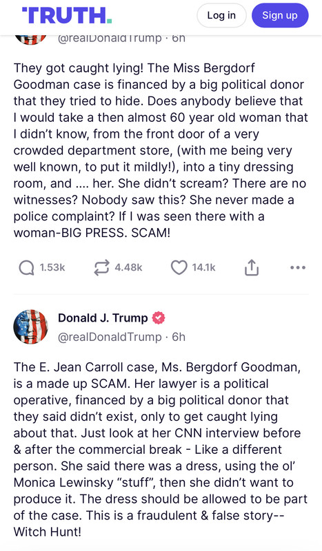 Jean Carroll “can’t recall” what year, month or day she was allegedly raped. You know why? Because it strips Trump of the ability to prove his whereabouts on the alleged day. He can’t even properly defend himself, it’s disgusting.