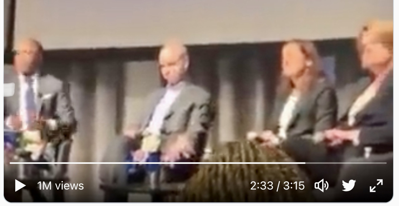 Is it just me, or does anyone else here also make a point of removing sunglasses when engaging with someone, the eyes are the window to the soul. These cheap aviators that Sponge Brain wears are crass, uncool, and an in-your-face insult to everyone he’s addressing. I guess the handlers don’t want to expose the drugged-out squint, looks like he’s on some heavy duty tranqs here…