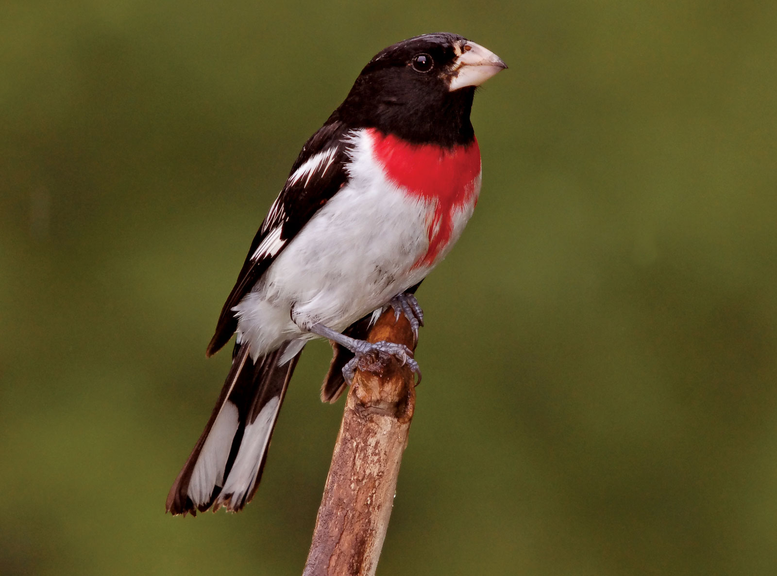 I briefly went out on my back porch yesterday and was treated to one of these beautiful Rose-breasted Grosbeaks singing in one of my Oak trees. It was in the lowest branches giving me an excellent view. He was singing, which also provided me with his song. They are uncommon migrants here.