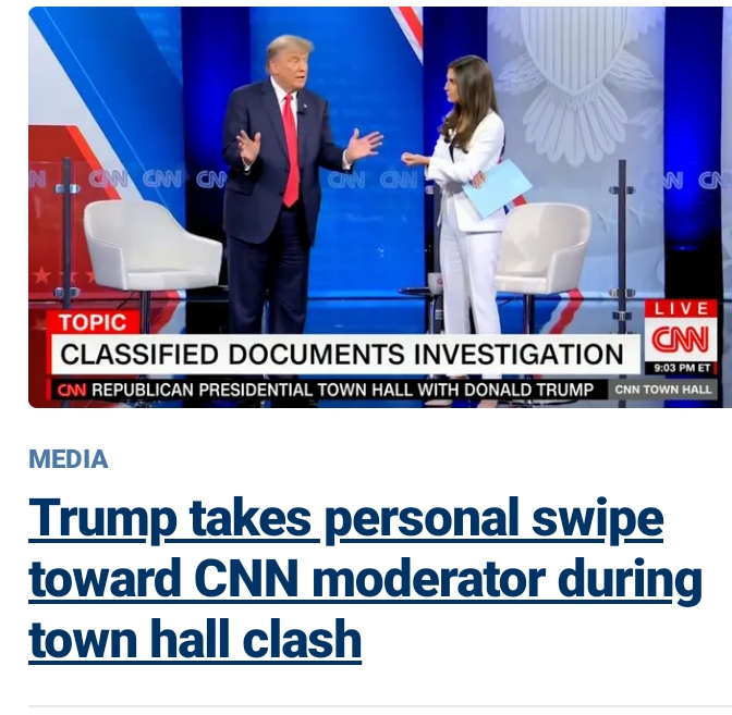 President Trump knew. The audience cheered for President Trump while Caitlin Collins continued to treat President Truimp like a combative witness. She stayed that way right up to the end. She entirely misunderstood the sweeping case of the many boxes of classified documents. The audience cheered and laughed when he finally called her a nasty person.