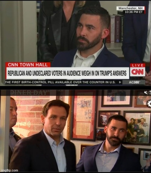 This has been picked up by a twitter user, a Ron DeSantis “plant” on the CNN panel after the Trump Town Hall.
