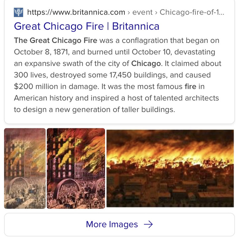 Peshtigo Wisconsin…the same night as the Chicago Fire…killed much more but it’s tragedy has been overshadowed by the Chicago Fire…