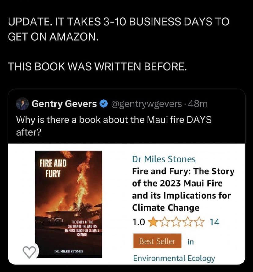 Indeed! The soulless jackals that are trying to take advantage of the people who have lost everything in Maui need to be identified and held up to public scrutiny. Only heartless ghouls would do such a thing! The Biden Administration needs to be monitored closely as to how they handle this. It should be easy to spot their collusion depending on how they respond.