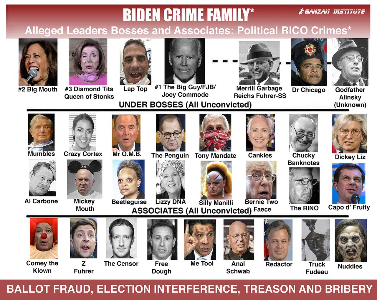 Clinton, o-bummer and w are the heads of their associated crime families that make up today’s American mafia.
