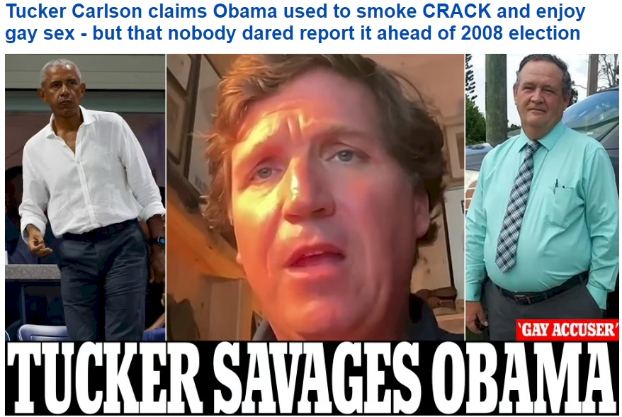 Tucker Carlson claims Barack Obama enjoyed smoking CRACK and having gay sex – but that nobody reported it ahead of 2008 election