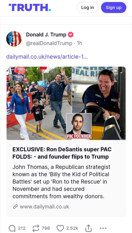 https://www.dailymail.co.uk/news/article-12465943/Ron-DeSantis-50-million-super-PAC-CLOSES-donors-spooked-rookie-s-mistakes.html https://truthsocial.com/@realDonaldTrump/110985896052099203