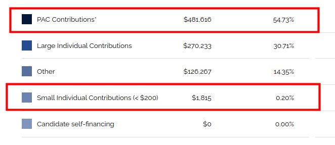 Notice how much of even the individual donors are out of state. Add to that the PAC donations that are largely funded by the coasts.