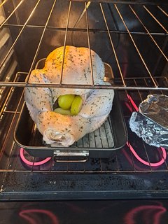 Alton Brown’s Oven Roasted Turkey underway. Thanksgiving isn’t Thanksgiving without a 5 gallon bucket and rinses in the bath tub. Lol. Cooking turkeys isn’t for sissies.