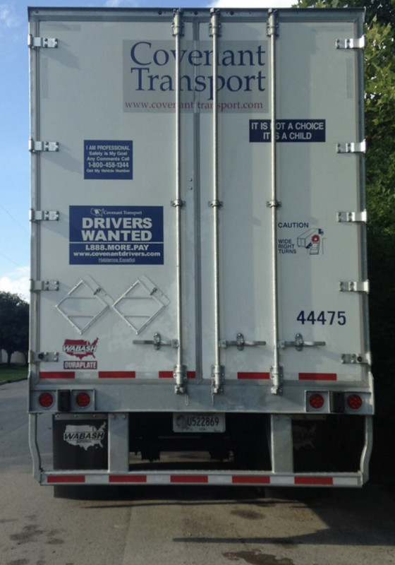 On the back of every Covenant trailer it says ”It’s a child not a choice”. I salute the drivers…