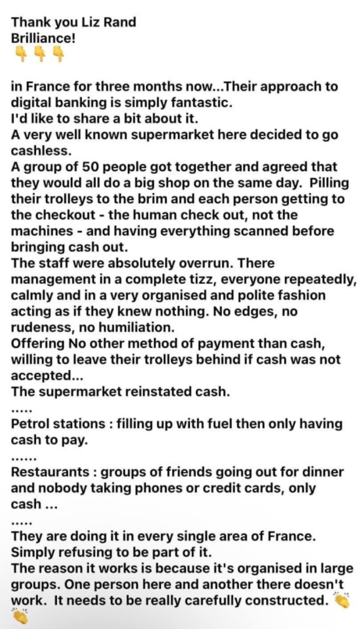 She’s right about needing organization and large groups to carry this off. File under “For Future Reference” 👍🏻