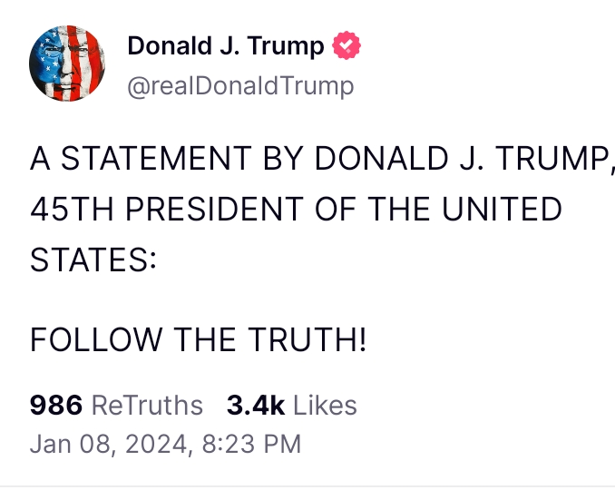 FOLLOW THE TRUTH! https://truthsocial.com/@realDonaldTrump/111723374434310844