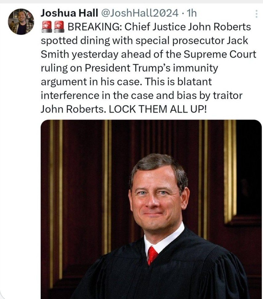 Remember, though, that Roberts was appointed by GW Bush, who has wholeheartedly supported EVERYTHING Barack, Soros and Schwab have done. The Bushes were born of the Satanic CIA and are amongst the deepest of the Swamp dwellers. Roberts has been compromised since Day 1. I would think that deep in the Epstein files is info on Johnny Boy. The IC has info on everyone who even thinks about working in DC, even as a garbage collector (that’s because there is so much garbage that works there)!