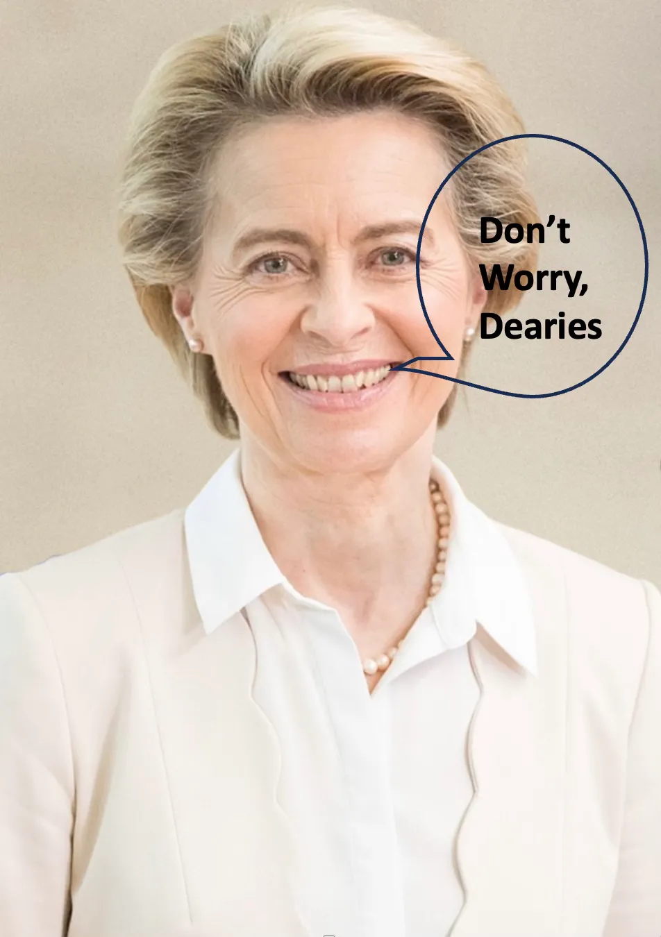 “That is exactly why Ursula von der leyen was (s)elected President of the European Commission, and why she was sent out to front the World Economic Forum (WEF) this week in her keynote speech to the assembled global grandees of Davos in the dead chill of January. It’s one thing when a cadaverous goblin such as Yuval Noah Harari tells you to eat bugs, and quite another thing when Oma Ursula tells you Keine Sorge, Kinder. Alles ist gut.”