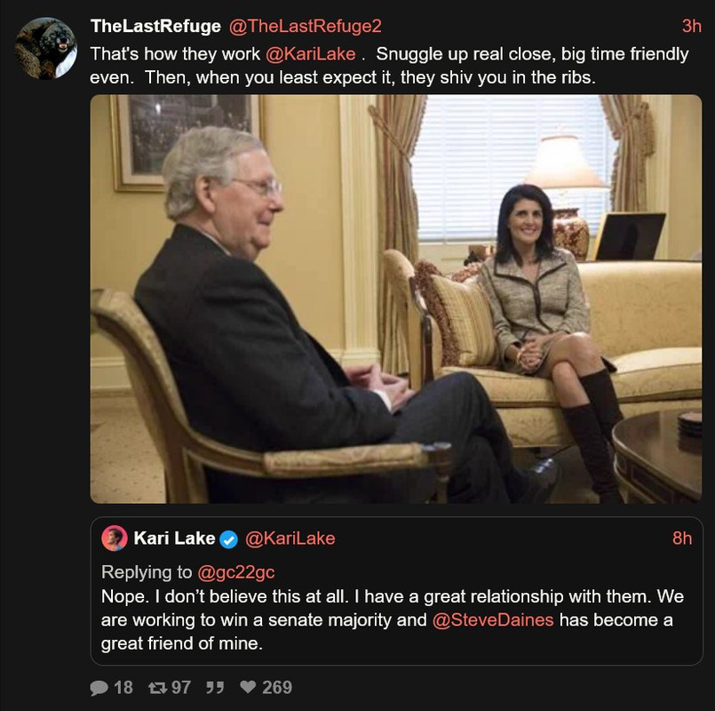 Remember what Mitch did to Kelly Tshibaka in Alaska? The Republican nominee/candidate was screwed by Mitch for Lisa Murkowski, who is part of his anti-MAGA team.