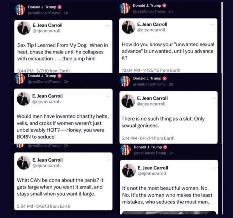 CitizenFreePress: Why didn’t the biased, corrupt, “judge” in the E Jean Carroll trial want these tweets by Carroll shown in court?