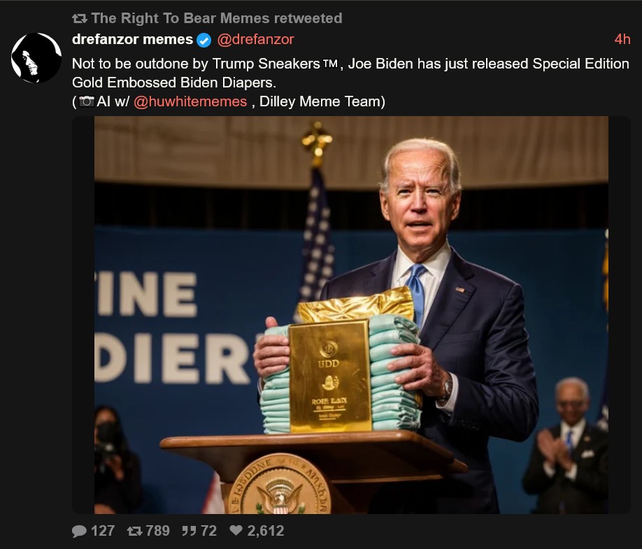 The White House had to dress Biden in non slip sketchers so he doesn’t fall and Trump just came out with shiny gold high tops