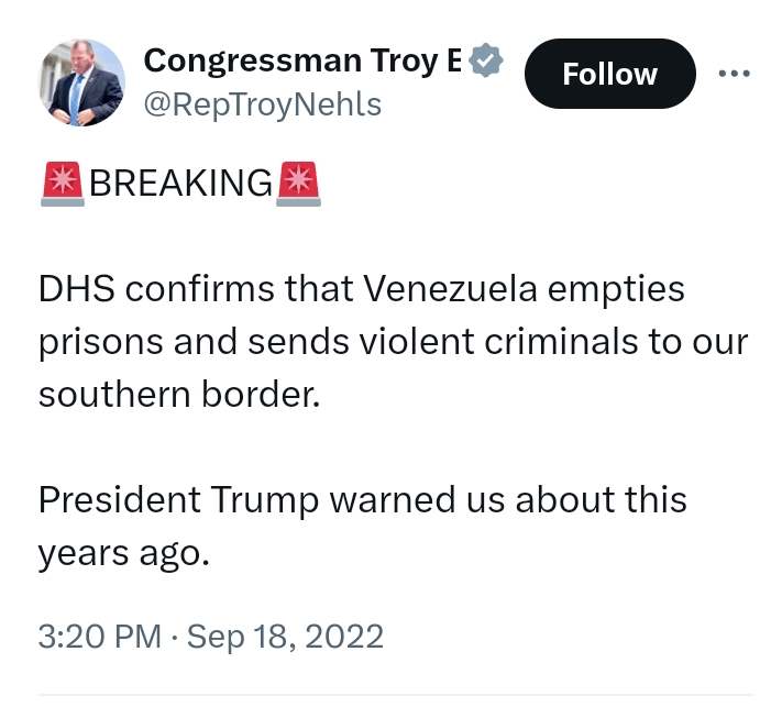 Delusional Joe can’t do this though since he’s begging Venezuela for gas at the same time as he’s taking in their criminals.