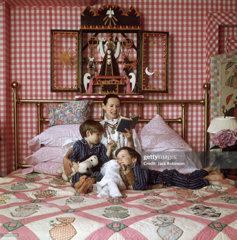 Just so people know, Anderson Cooper is the progeny of the billionaire satanist Gloria Vanderbilt. Here’s a picture of her and her two boys, with quaint artwork depicting human sacrifice behind them: